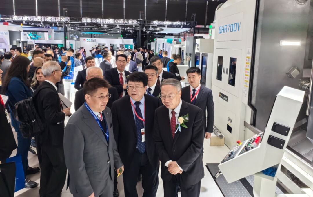 十三屆全國政協(xié)經(jīng)濟委員會副主任、工業(yè)和信息化部原副部長蘇波,教育部原部長、中國工程院院士周濟,中國機床工具工業(yè)協(xié)會常務(wù)副理事長兼秘書長毛予鋒,陜西國資發(fā)展研究院高端裝備制造產(chǎn)業(yè)專家委員會主任嚴鑒鉑等領(lǐng)導蒞臨集團展位。秦川集團黨委書記、董事長馬旭耀、寶雞機床董事長李清耀向各位領(lǐng)導介紹企業(yè)及產(chǎn)品情況。
